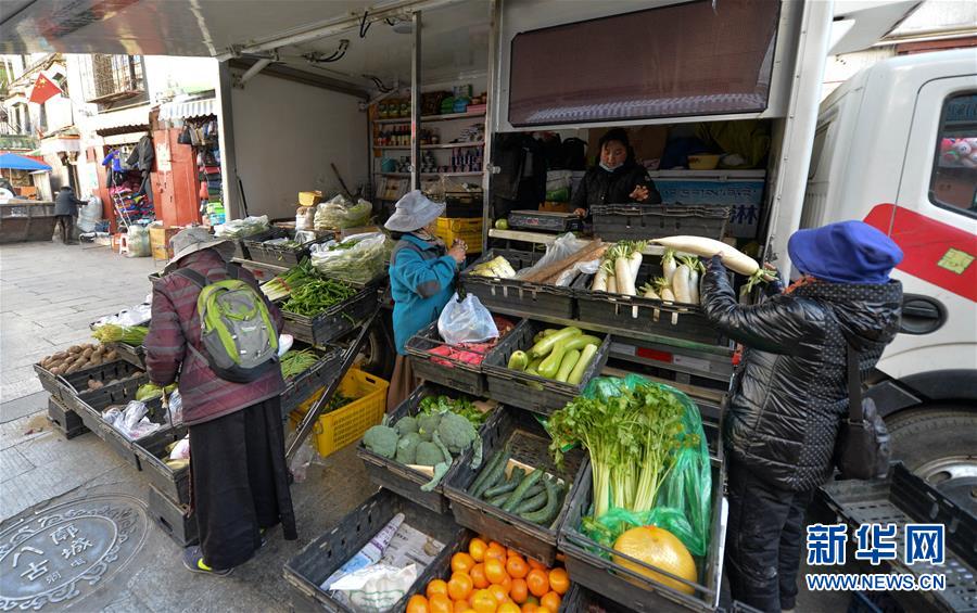 拉萨净土产业惠农富民 在拉萨市中心,一辆蔬菜直销车在销售净土产业种植的蔬菜(11月16日摄)。新华社记者白禹摄