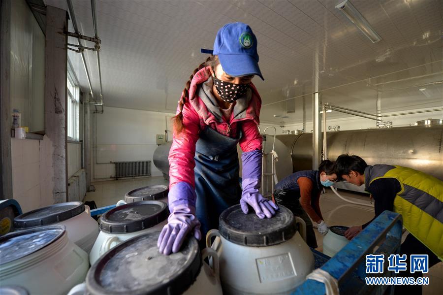 拉萨净土产业惠农富民在拉萨市城关区高标准奶牛养殖中心,工作人员在运输当天产的鲜牛奶(11月16日摄)。新华社记者白禹摄
