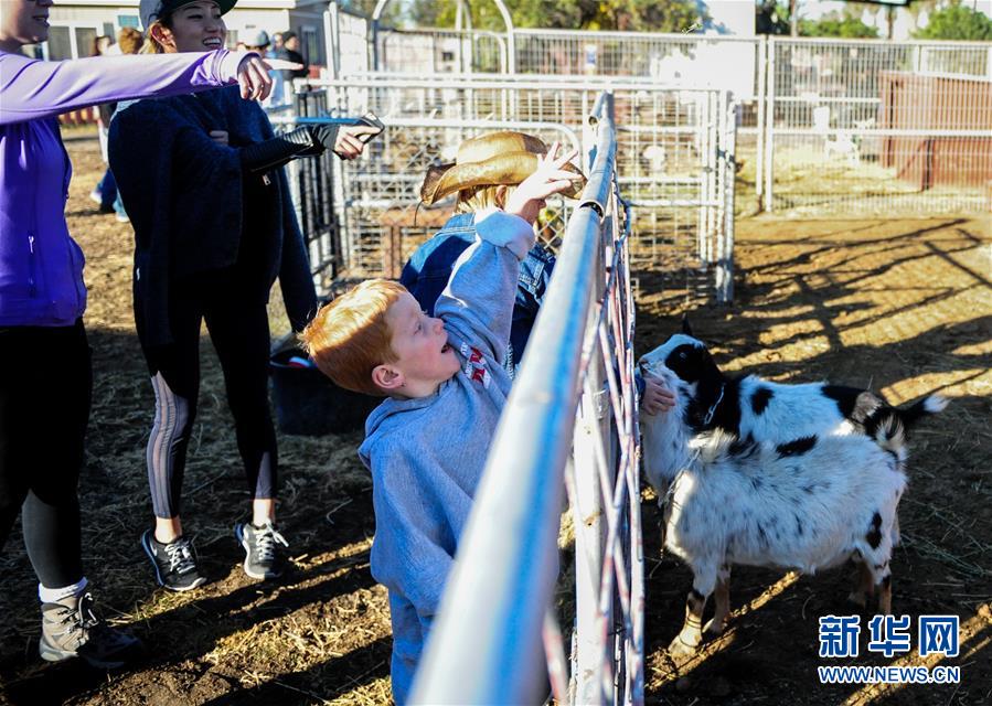 12月12日,在美国洛杉矶以东60多公里的安大略市郊区“艾米的农场”,孩子们被小动物吸引。 “艾米的农场”位于洛杉矶以东60多公里的安大略市郊区,每周一至周六,附近居民和中小学生以家庭或者班级为单位来这里参观体验。截至目前,农场已经接待了近30万中小学生。新华社记者 张超群 摄