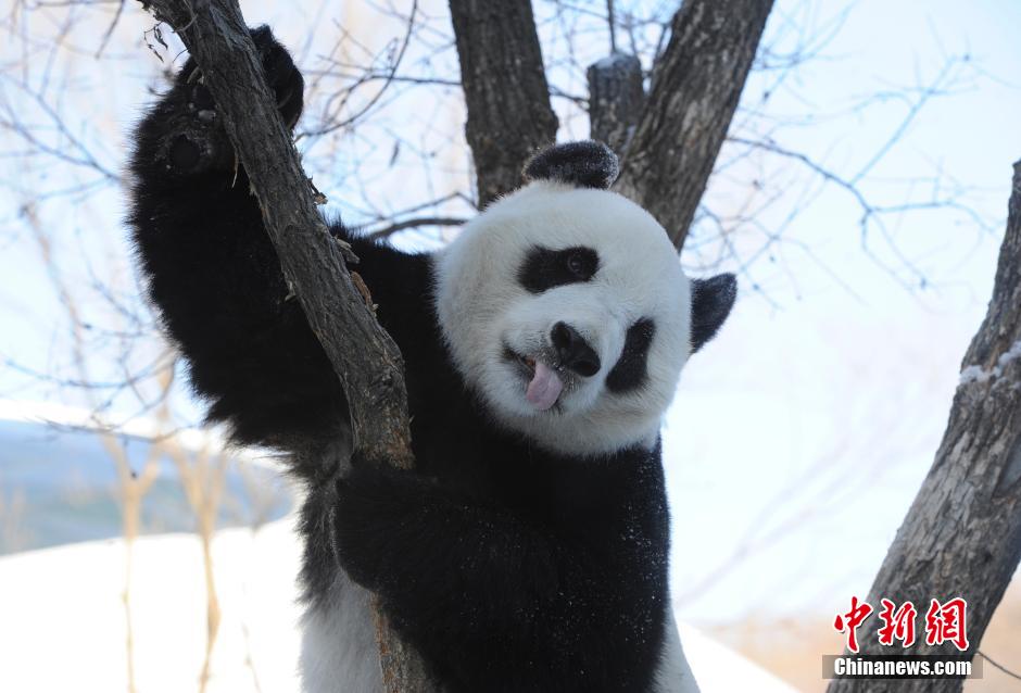 大熊猫长春越冬雪地卖萌