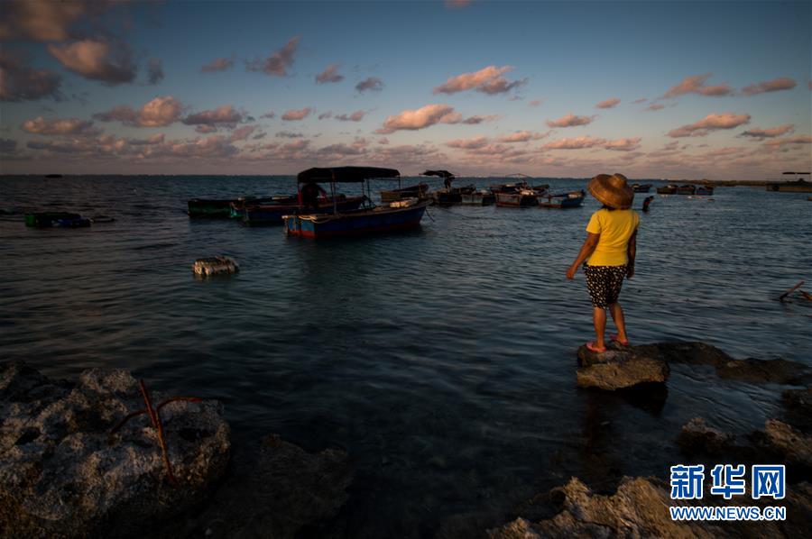 一名女子站在三沙赵述岛岸边(12月11日摄)。时下正值冬季,在我国南部的海南省三沙市,温暖的气候、迷人的海岛、朴实的渔民、风光旖旎的日出日落,共同绘就一幅我国南海独有的瑰丽画面。新华社记者 赵颖全 摄