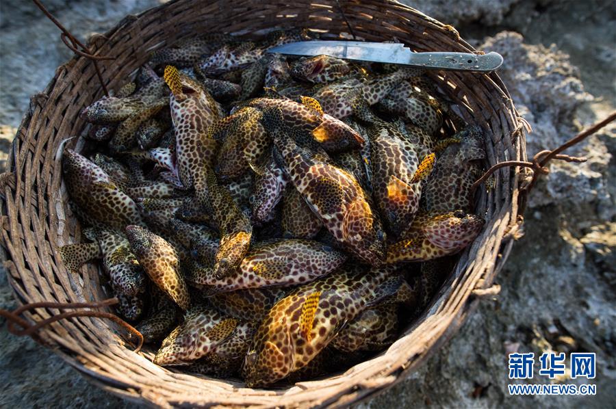 三沙赵述岛渔民收获的小石斑鱼(12月11日摄)。时下正值冬季,在我国南部的海南省三沙市,温暖的气候、迷人的海岛、朴实的渔民、风光旖旎的日出日落,共同绘就一幅我国南海独有的瑰丽画面。新华社记者 赵颖全 摄