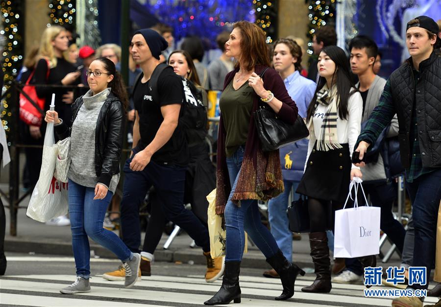 12月24日,市民和游客身着短装走在美国纽约曼哈顿第五大道。当日,美国纽约市最高气温达到72华氏度(22摄氏度),创下了圣诞平安夜的最高纪录,不少市民和游客纷纷身着短装或单衣出行。根据气象部门发布的预报,温暖的天气还将持续,明天纽约将迎来有气象记录以来的最暖圣诞节。新华社记者王雷摄