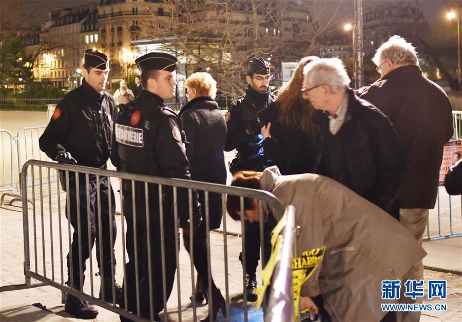 12月24日,法国警察在巴黎圣母院外设置围栏,对进入教堂做弥撒的市民搜身检查。圣诞节期间,法国派出12万名安全人员对全国4万座教堂严加守护,对进入教堂的人员实行搜身检查等安保措施,防止恐怖事件发生。新华社记者李根兴摄