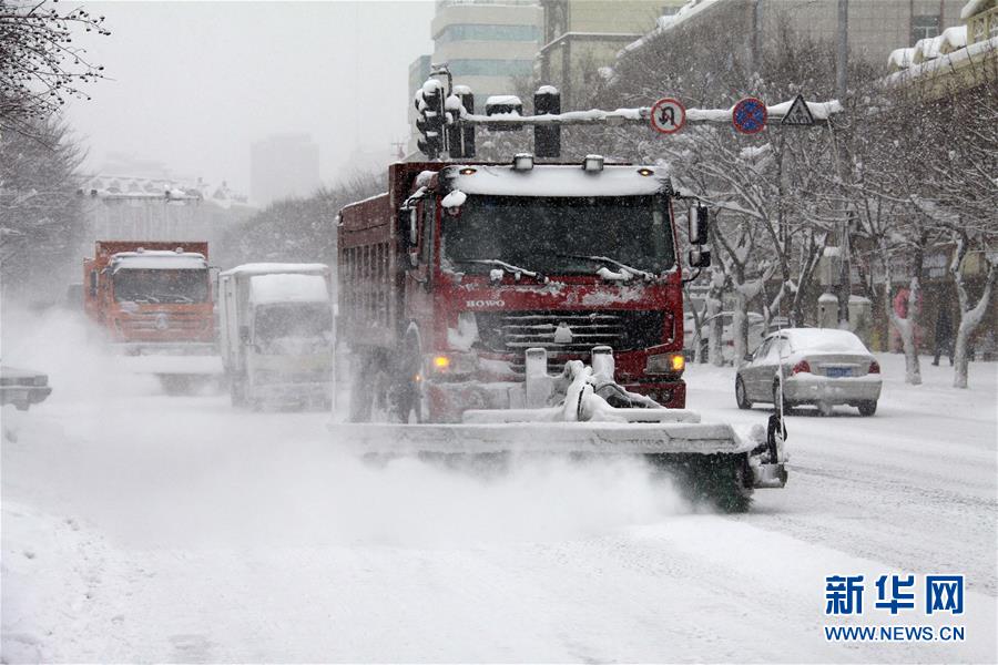 12月27日,阿勒泰市城建部门出动车辆清理积雪。受强冷空气影响,从12月23日开始,新疆阿勒泰市区出现持续降雪,阿勒泰气象部门一度发布暴雪蓝色预警,部分地区积雪厚度已超过40厘米。新华社发(唐晓波 摄)