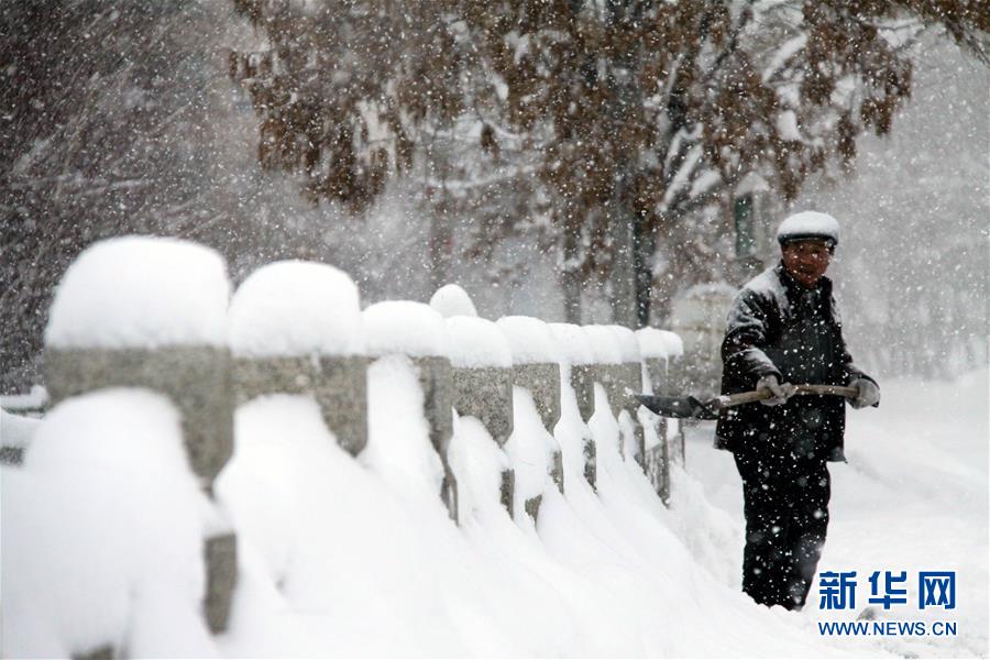 12月27日,阿勒泰市民在清理积雪。受强冷空气影响,从12月23日开始,新疆阿勒泰市区出现持续降雪,阿勒泰气象部门一度发布暴雪蓝色预警,部分地区积雪厚度已超过40厘米。新华社发(唐晓波 摄)