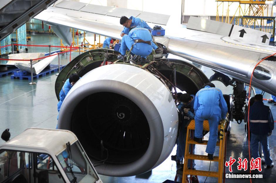 12月28日,随着春运的临近,厦门航空公司的飞机陆续入库“体检”,确保飞行安全万无一失。 中新社记者 王东明 摄