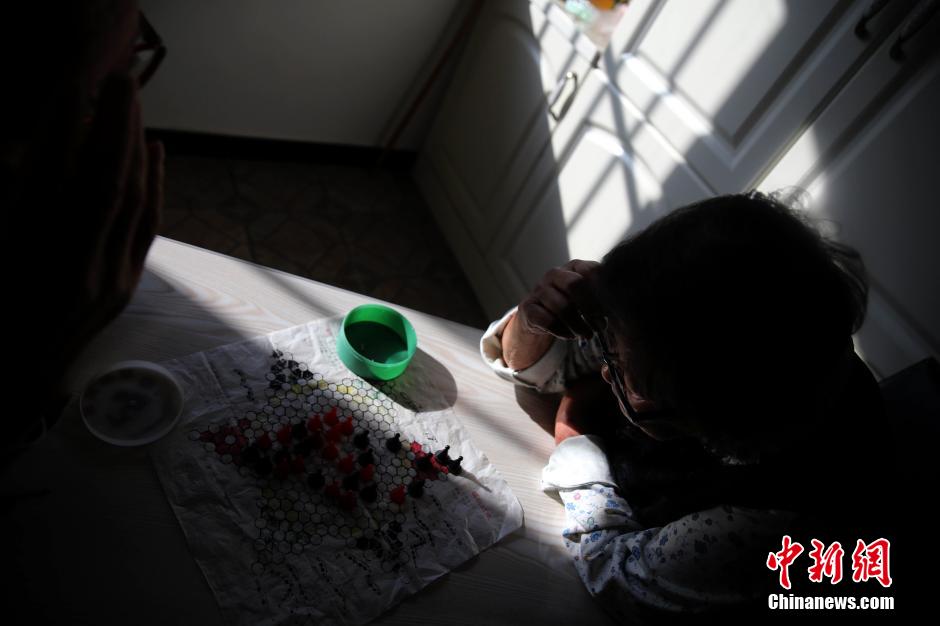 12月28日,李淑英和家人下跳棋。86岁的李淑英患有肾病,每周要到医院透析三到四次。上下楼梯,和家人下跳棋,去社区老年中心打台球是她日常仅有的体育运动,她说生活虽难但运动让她充实和乐观。中新社记者 杨可佳 摄
