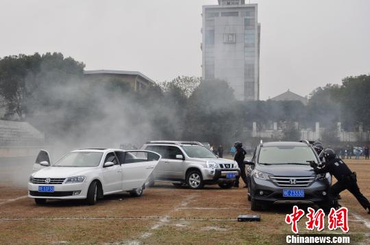 12月29日下午,湖北枝江市公安局在该市实验中学体育场举行反恐防暴应急处突演练。演练中,“毒贩”携带枪支和炸弹驾车在收费站强行冲卡后,全副武装的处突队员仅用5分钟就将“毒贩”截获,现场“击毙”一名,制服两名。此外,处突队还现场演练了擒敌拳,戒备姿势与伸缩警棍的使用,盾牌的攻击与防护,徒手解脱、控制与带离,暴力倾向和个人极端事件处置,车辆设卡堵截等科目。据了解,枝江市公安局于今年11月招录40名队伍军人、大中专毕业生,组建了反恐防暴应急处突队,并进行了1个月的封闭式集训。处突队配置了防暴枪、网枪、微型冲锋枪、狙击步枪、排爆服、防爆毯、防弹盾牌、防弹头盔等专业防暴警用装备,承担参与处置暴力恐怖犯罪,严重暴力犯罪,重大突发性事件,重大活动安全保卫,巡逻执勤,为危难群众提供紧急求助服务等特殊任务。(完)
