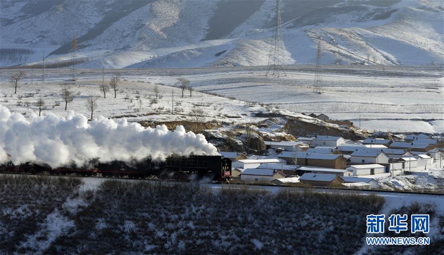 12月29日,一辆蒸汽机车在内蒙古克什克腾旗白雪覆盖的山间行驶。雪后,内蒙古克什克腾旗的山地草原银装素裹,白雪覆盖的梯田、似蛟龙吐雾的蒸汽机车和草原冬牧情景,勾勒出唯美的冬日北国。 新华社记者张善臣摄