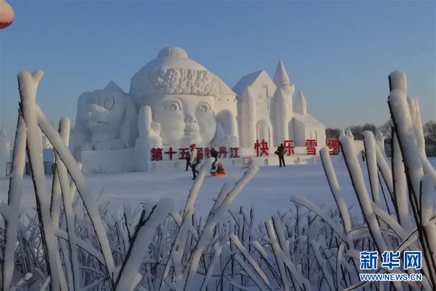 1月10日,游客在牡丹江雪堡游玩。当日,黑龙江省牡丹江“第十五届快乐雪堡”在牡丹江江心岛开幕,雪堡总占地面积约14万平方米,用雪量约7万立方米,为游客提供了一个赏玩冰雪的好去处。新华社发(张春祥 摄)