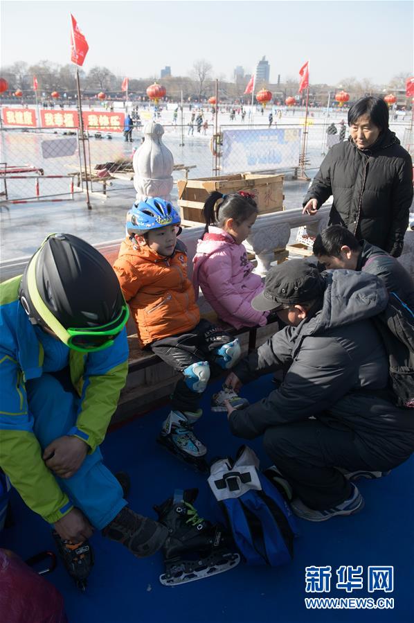 人们在后海冰场边换冰鞋(1月9日摄)。新华社记者 尹栋逊摄