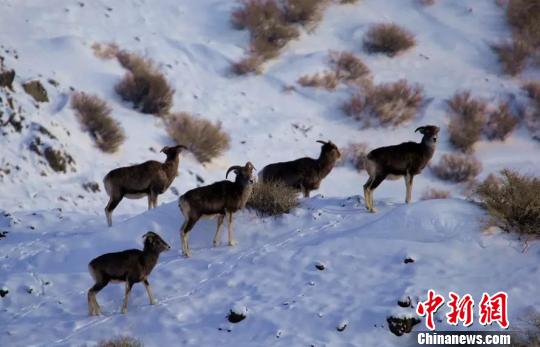 地处新疆北部阿勒泰布尔津县,每年都会有大批野山羊在这里生活。受气温影响,野山羊成群结队出行。冯强华 摄