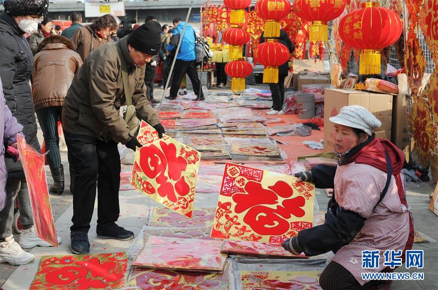 1月11日,人们在山东青岛李村年货大集上选购各类墙画。进入农历腊月,年关将至,人们纷纷开始置办年货,节日氛围愈渐浓厚。 新华社发(王海滨 摄)