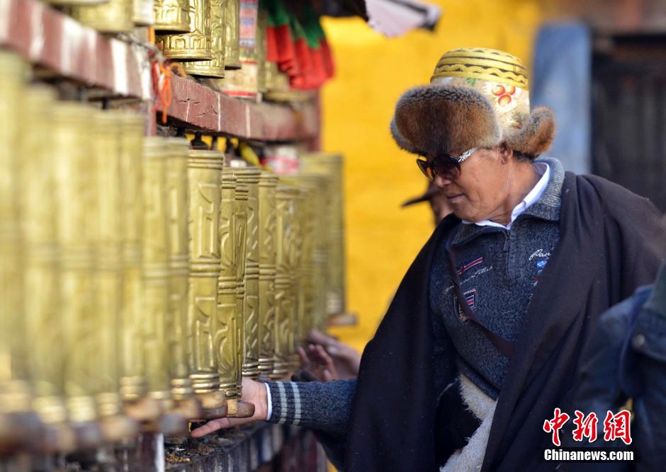 1月13日,信教民众在八廓街内转经。 李林 摄