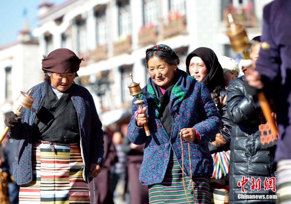 1月13日,信教民众在拉萨市八廓街内转经。 李林 摄