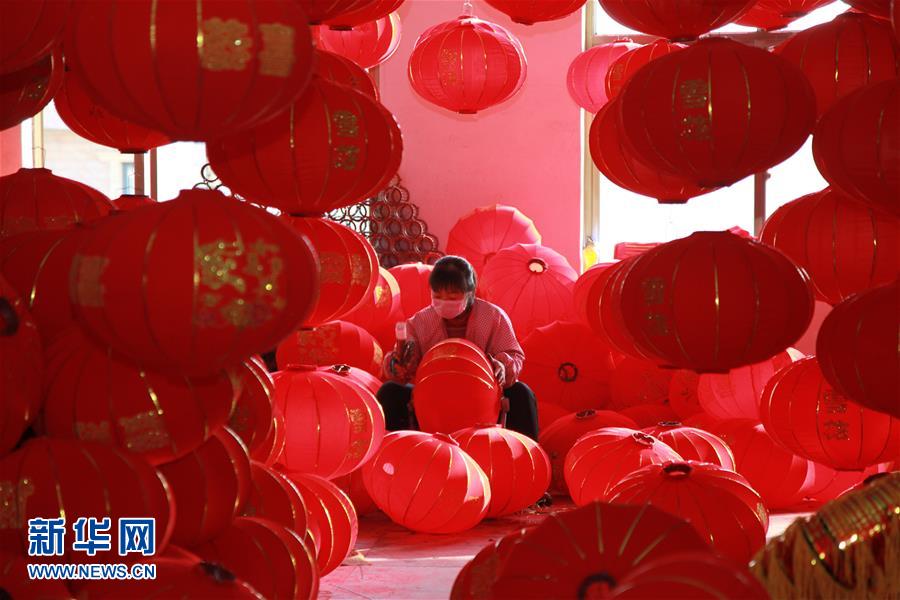 1月13日,在河北省石家庄市藁城区屯头村,工人在制作宫灯。 新华社发(詹新城 摄)