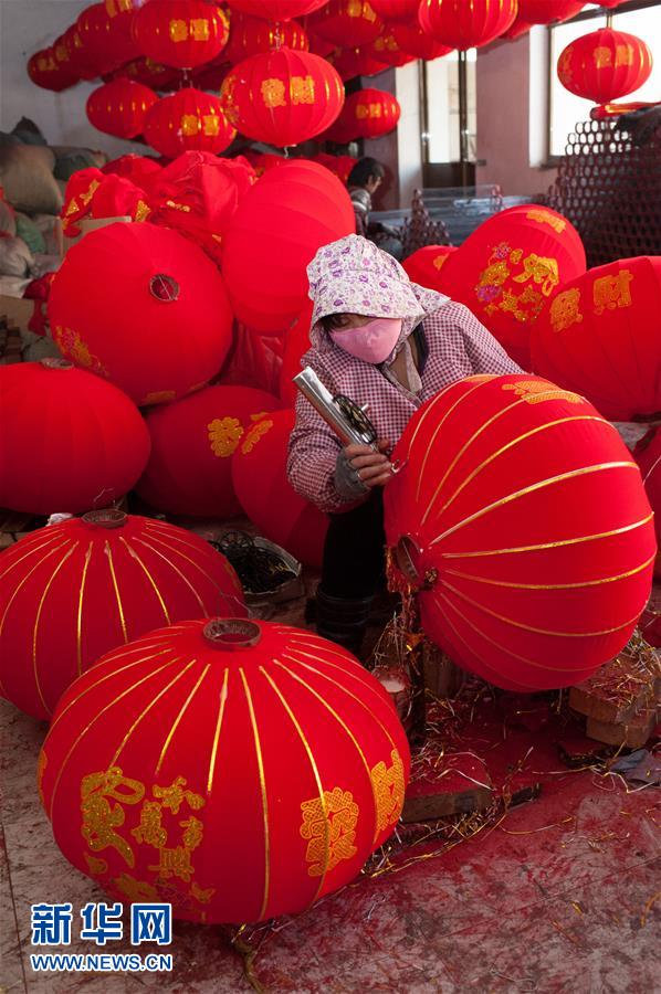 1月13日,在河北省石家庄市藁城区屯头村,工人在制作宫灯。 新华社发(刘玉和 摄)