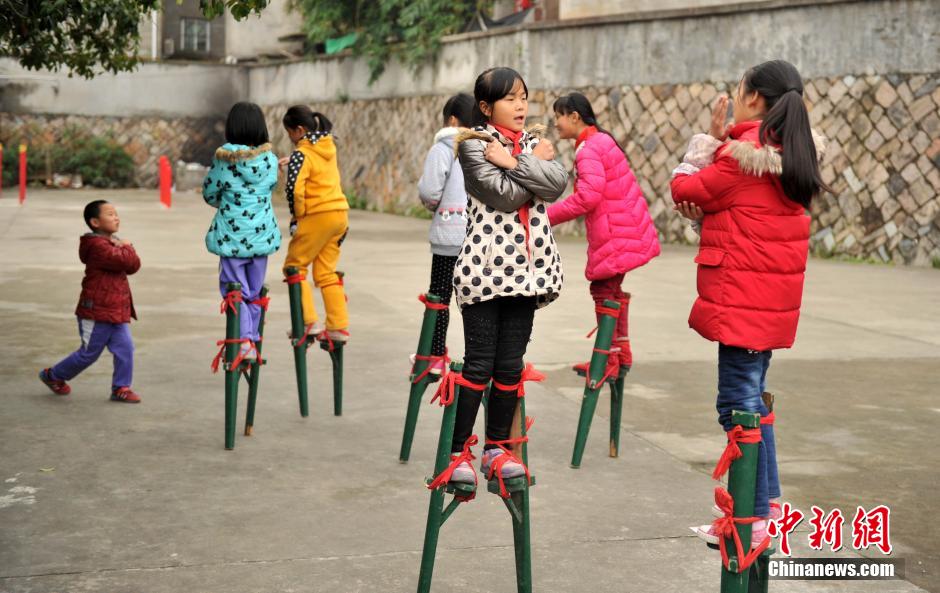 年过六旬的王建民,退休前在福州的一所小学内担任保安。退休后,有着近20年高跷艺术演出经验的他并没有闲下来,而是重新走进了校园内为孩子们授课,并组成了一组小学高跷队,传承这“高人一等”的绝活。1月13日,记者来到了福州赤桥小学了解这个特色校本课程。吕明 摄