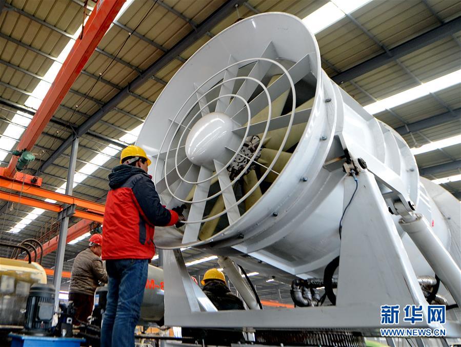 1月13日,河北远达车辆制造有限公司工人在车间内装配“雾炮车”。近日,位于河北省肥乡县的河北远达车辆制造公司正加紧生产环保除尘风送式喷雾机(又叫“雾炮车”),喷雾机安装在环卫车辆的后半部分,利用风机将水雾喷洒出去,达到抑制扬尘、净化空气的效果。新华社记者 牟宇 摄