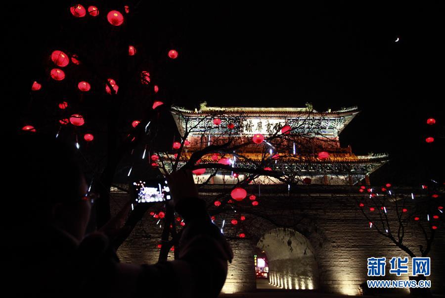 这是1月14日拍摄的河北宣化古城镇朔楼。春节将至,河北宣化古城红灯高挂,年味渐浓。 新华社发(陈晓东 摄)