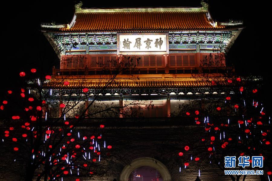 这是1月14日拍摄的河北宣化古城镇朔楼。春节将至,河北宣化古城红灯高挂,年味渐浓。 新华社发(陈晓东 摄)