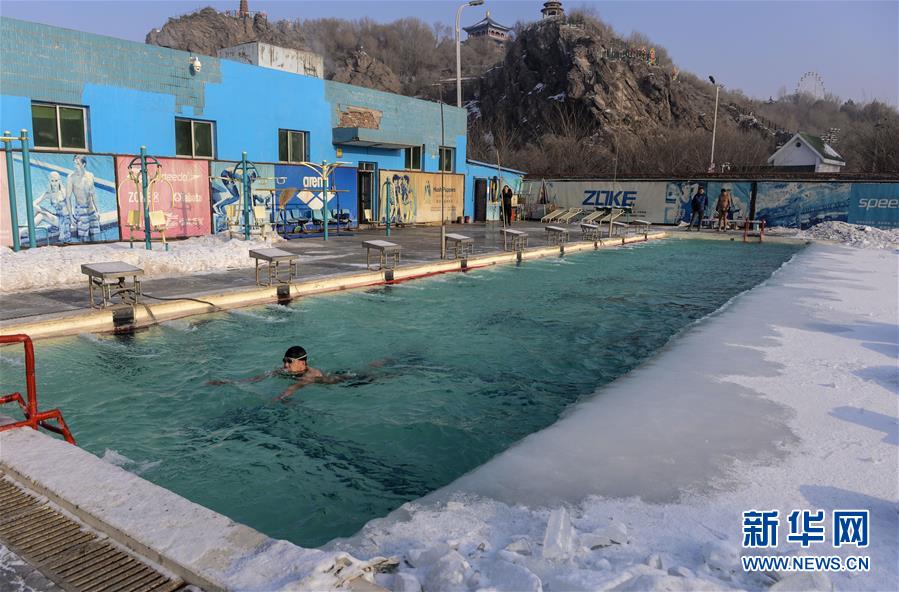 图为在乌鲁木齐红山游泳馆室外泳池,一名冬泳爱好者在水中畅游(1月13日摄)。 新华社记者王菲摄