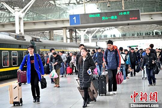1月20日,学生旅客正在进站上车。中新社记者 张娅子 摄