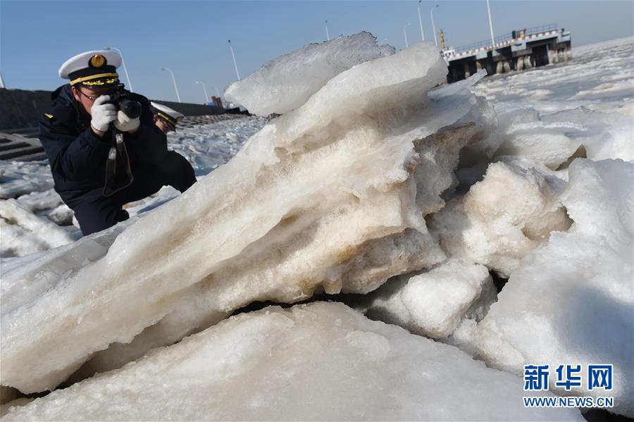 1月24日,沧州海事局工作人员监控黄骅港海域海冰发展情况。受持续低温天气影响,我国重要的煤炭输出港——河北沧州黄骅港附近海域冰情加重,浮冰范围扩展至岸线外缘15海里,海冰厚度达20至30厘米,1月23日凌晨黄骅港封航,至24日晚已有26艘电煤运输船舶滞留港口。目前,有关部门密切监控海冰发展情况并择机进行港区破冰作业,确保电煤运输安全。新华社发(傅新春 摄)