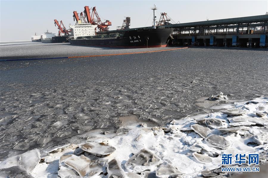 1月24日在黄骅港拍摄的被海冰围困的电煤运输船舶。受持续低温天气影响,我国重要的煤炭输出港——河北沧州黄骅港附近海域冰情加重,浮冰范围扩展至岸线外缘15海里,海冰厚度达20至30厘米,1月23日凌晨黄骅港封航,至24日晚已有26艘电煤运输船舶滞留港口。目前,有关部门密切监控海冰发展情况并择机进行港区破冰作业,确保电煤运输安全。新华社发(傅新春 摄)