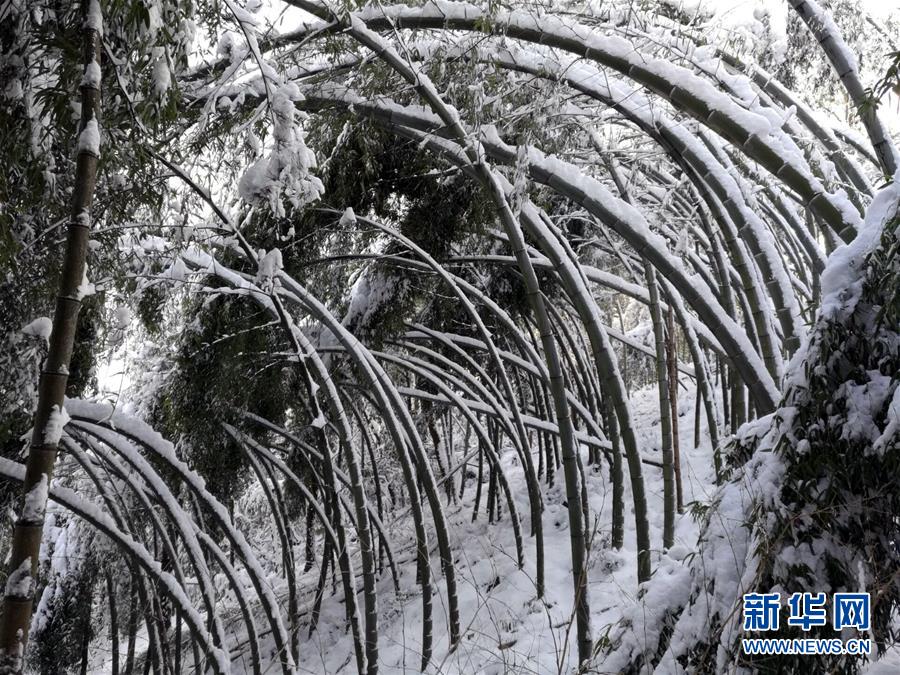 1月24日,杭州西湖景区五云山上的竹子被大雪压弯。当日,大雪初霁,杭州西湖景区最低气温达零下6摄氏度,群山笼罩在白雪中。西湖山水在冰雪中呈现与平日不同的美。 新华社记者王定昶摄