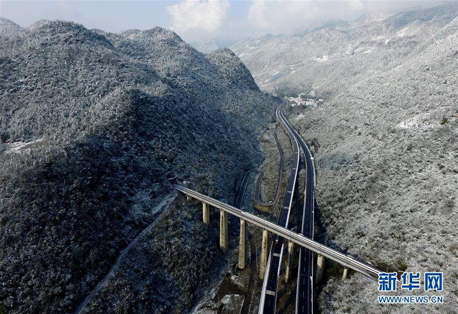 1月23日,一列动车经过宜万铁路湖北省恩施市白果乡境内。连日大雪过后,列车在银装素裹的山林中飞驰。 新华社发(杨顺丕 摄)