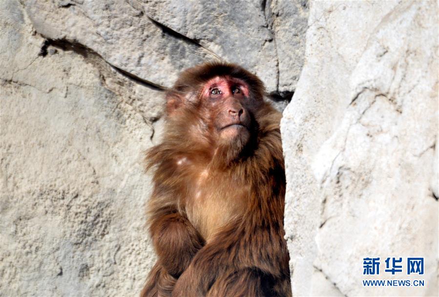 1月24日,在呼和浩特市大青山野生动物园,一只藏酋猴举头仰望。寒潮来袭,生活在内蒙古呼和浩特市大青山动物园的猴子在园里各显神通,萌态十足。 新华社发(王正 摄)