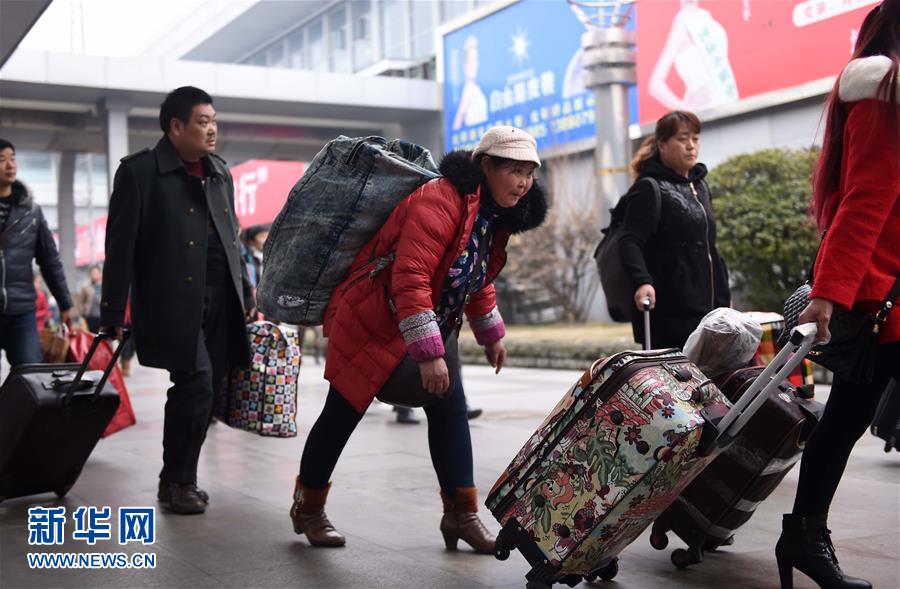 1月30日,在成都火车站,旅客背着包裹准备出站。临近春节,在成都火车站,众多在外奔波的返乡人背着或重或轻、或大或小的行囊,满载着一年的收获和对亲人的思念,踏上返乡的旅途。新华社记者薛玉斌摄