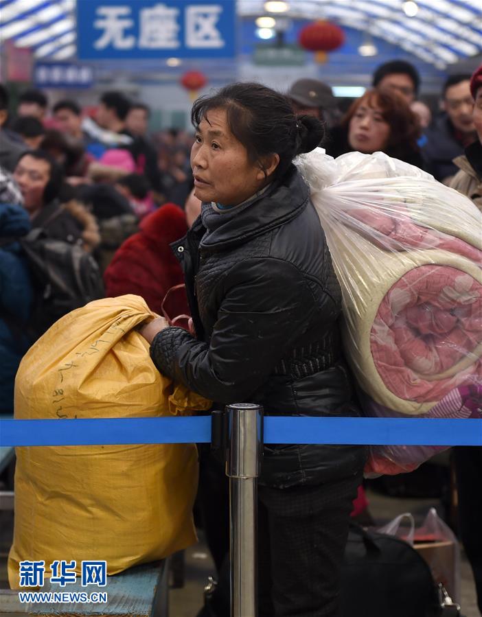 1月30日,在成都火车站,旅客背着包裹准备进站乘车。临近春节,在成都火车站,众多在外奔波的返乡人背着或重或轻、或大或小的行囊,满载着一年的收获和对亲人的思念,踏上返乡的旅途。新华社记者薛玉斌摄