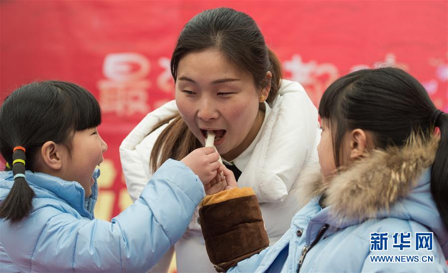 2月3日,两位小朋友喂妈妈吃“春卷”。 2月4日是二十四节气中的“立春”,成都第二届裹春卷大赛3日在成都市名小吃“黄春卷”发源地新津县新平镇举行。当地有吃春卷“咬春”的习俗,寓意迎新纳吉,祈福来年风调雨顺、春风得意。新华社记者 江宏景 摄