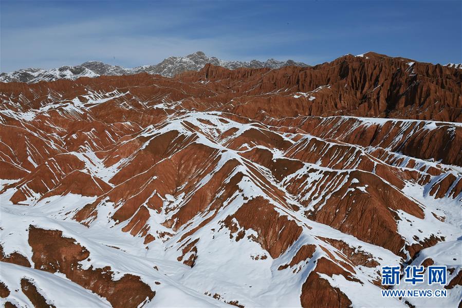 2月2日拍摄的吐鲁番火焰山落雪景观。火焰山横卧于新疆吐鲁番盆地,盛夏酷热似火,冬季披上“银装”后一派别样景致。 新华社发(刘健 摄)