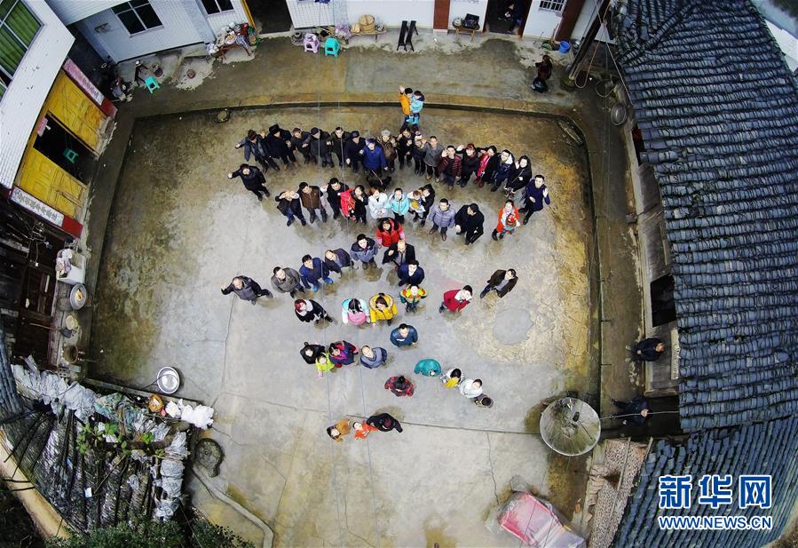 这是四川省宜宾市筠连县石门村肖召华老人一家部分成员的“航拍”合影,这个大家庭有10户共128人(1月31日摄)。 新华社发(魏新华 摄)
