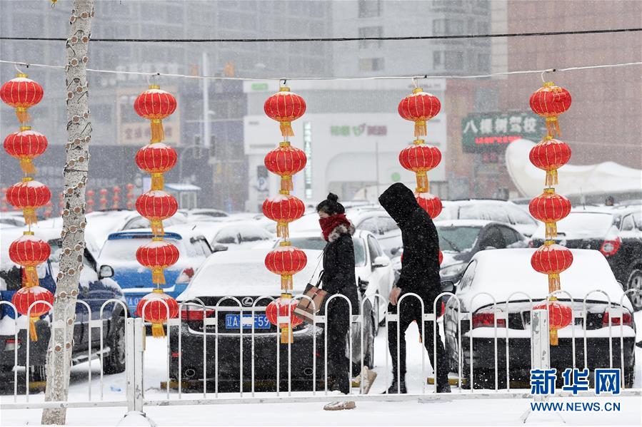2月13日,沈阳市民冒雪出行。春节假期最后一天,辽宁迎来农历猴年首场强降雪,境内大部分高速公路封闭,节日返程交通严重受阻。据气象部门预计,降雪对交通的影响将延续至14日。新华社记者 李钢 摄