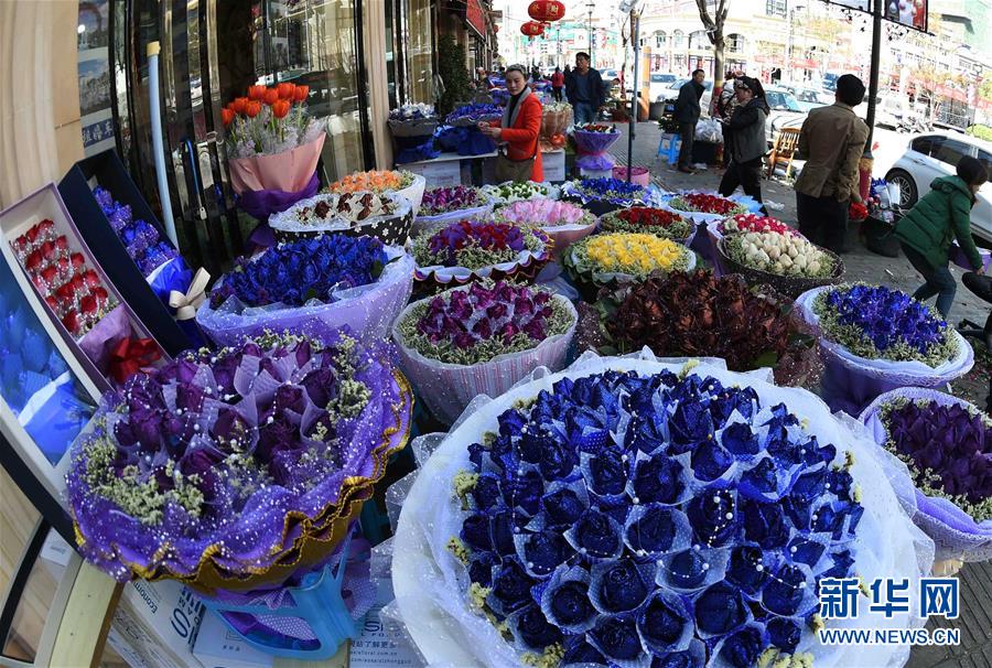 2月14日,在云南省昆明市联盟花市,各色鲜花待售。当日是情人节,云南省大批鲜花集中上市,用于供应节日市场。 新华社记者 蔺以光 摄