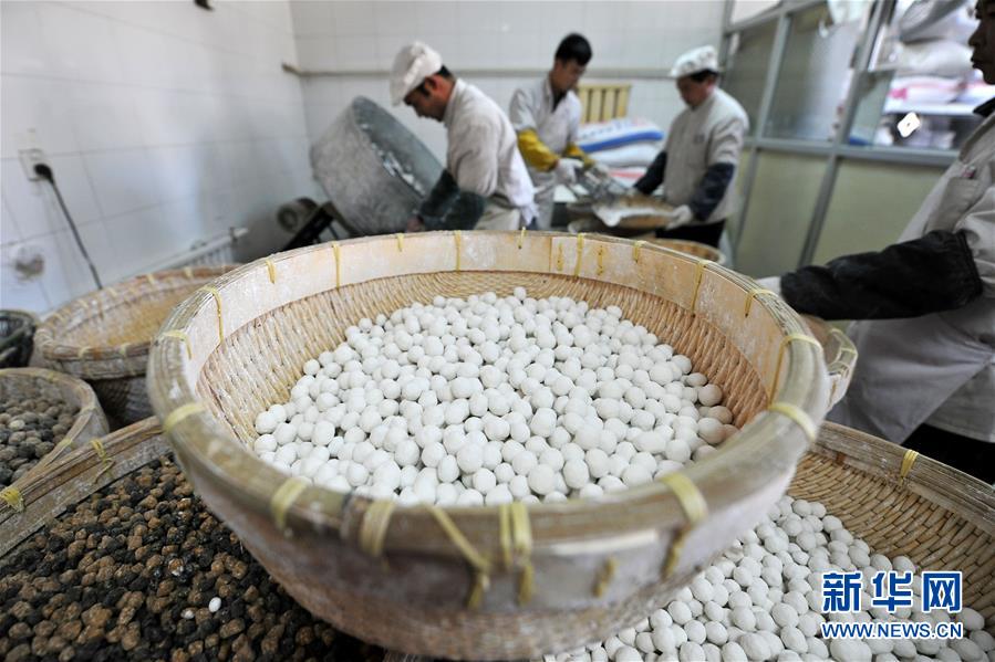 2月15日,太原市老字号“老鼠窟”元宵店的工作人员在加工元宵。随着元宵节临近,山西太原的众多老字号元宵店生意红火,员工们采用传统工艺加紧赶制各种口味的元宵,保障节日市场供应。 新华社记者 詹彦 摄