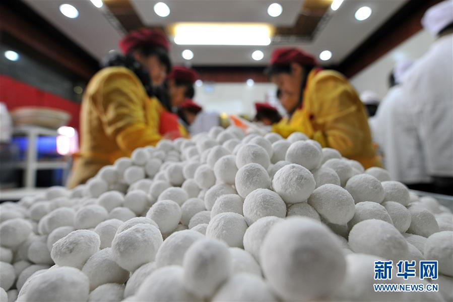 2月15日,太原市老字号“老鼠窟”元宵店的工作人员在分装元宵。随着元宵节临近,山西太原的众多老字号元宵店生意红火,员工们采用传统工艺加紧赶制各种口味的元宵,保障节日市场供应。 新华社记者 詹彦 摄