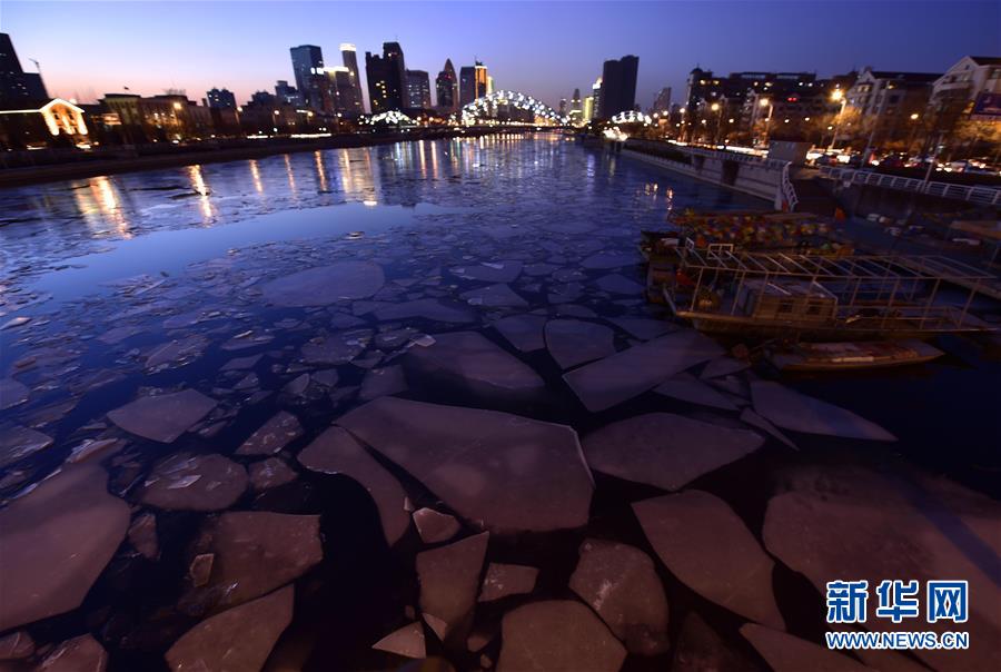 2月15日拍摄的海河夜景。 近日,随着气温上升,流经天津市区的海河逐渐解冻开河。新华社记者 岳月伟 摄