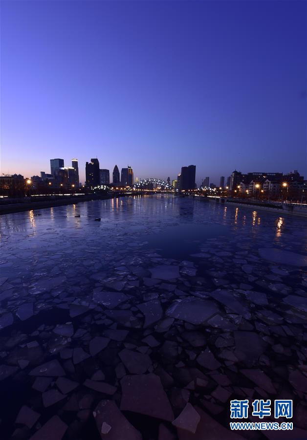 2月15日拍摄的海河夜景。 近日,随着气温上升,流经天津市区的海河逐渐解冻开河。新华社记者 岳月伟 摄