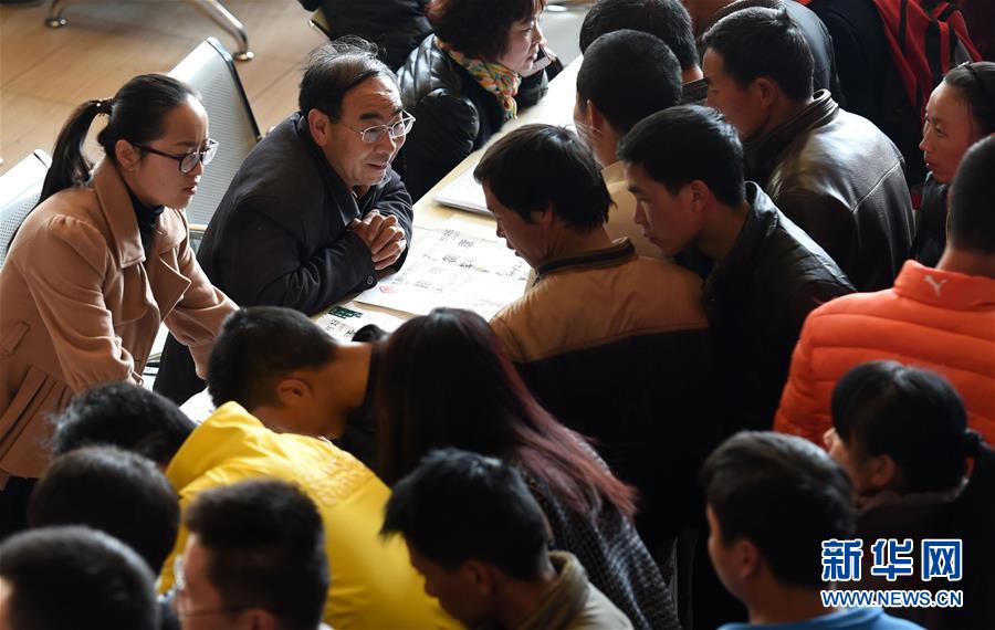 2月17日,一些求职者在昆明市南坝人力资源市场内咨询用工情况。春节后,随着外来务工人员陆续返城和用工单位相继开工,云南省昆明市的劳动力市场迎来“招工潮”。据了解,昆明南坝人力资源市场有200多家用工单位进场招聘,提供工作岗位3000余个,近期每天人流量达7000人次以上。当地将启动“春风行动”招聘会,为进城务工人员提供数万个就业岗位。从目前用工信息看,餐饮、酒店、保安、保姆和洗车等服务行业急需用工,今年各用人单位提供的职位和薪金都有所增加。新华社记者 蔺以光 摄