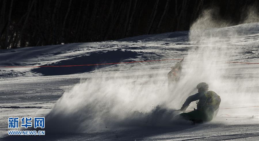 2月17日,群英铁人队选手丛伟在短距离赛中摔倒。当日,2016“搜狐杯”全国滑雪登山挑战赛在河北崇礼万龙滑雪场开幕,并进行了短距离赛和垂直竞速赛的争夺。 新华社记者费茂华摄