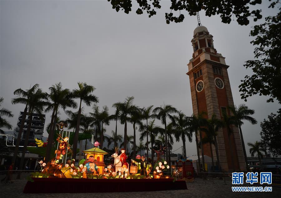 这是2月17日在香港文化中心露天广场拍摄的彩灯。当日,香港特区政府康乐及文化事务署举行元宵彩灯会记者招待会,宣布2月20日至22日在不同地点举行多项节庆活动,包括大型彩灯会及彩灯展等。新华社发(伍永健 摄)