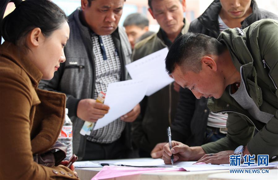 2月20日,求职者在广西柳城县“春风行动”大型招聘会上登记应聘信息。当日,广西柳州市柳城县举办“春风行动”大型招聘会,70多家用人单位提供的5000余个就业岗位,吸引众多求职者前来咨询、应聘。新华社发(邓克轶 摄)
