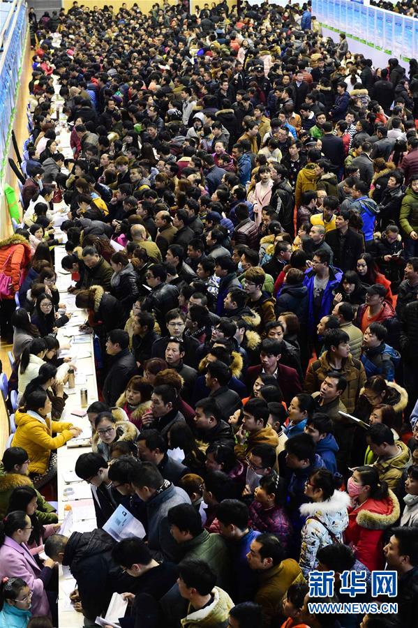 2月20日,求职者在江苏镇江“春风行动”大型就业招聘会上求职。当日,江苏镇江“春风行动”大型就业招聘会在镇江新区大港体育馆举行,共有186家单位携6000余个岗位进场,吸引众多求职者前来应聘。新华社发(王珵 摄)