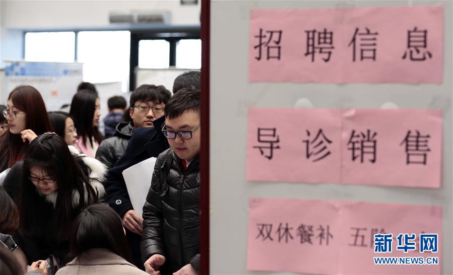 2月20日,求职者在“2016年天津生源外地高校毕业生就业洽谈会”上应聘。当日,天津春节后的首场面向应届毕业生的公益招聘会“2016年天津生源外地高校毕业生就业洽谈会”在天津工业大学举行,130家用人单位为毕业生提供约2500个就业岗位,九成岗位面向本科和高职(专科)毕业生。新华社发(刘东岳 摄)